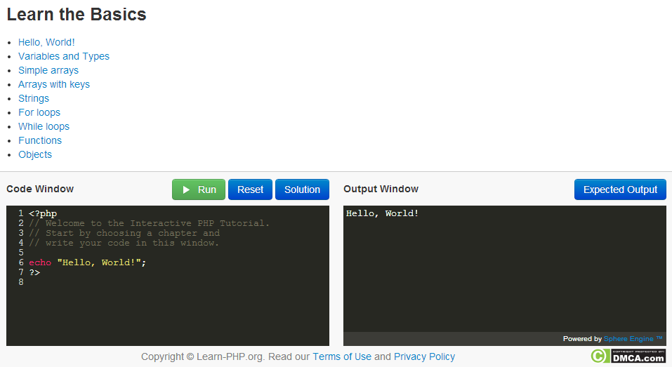 El sitio ofrece todo lo básico pero fundamental de PHP, como son las estructuras, cadenas, ciclos, funciones y objetos, cada sección con información precisa explicándote que estás aprendiendo y como funciona en general el lenguaje.